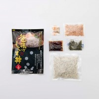| 内容量:釜揚げしらす40g×1袋、丼のたれ20g×1袋、削り節1g×1袋、ごま0.7g×1袋、のり0.3g×1袋 |