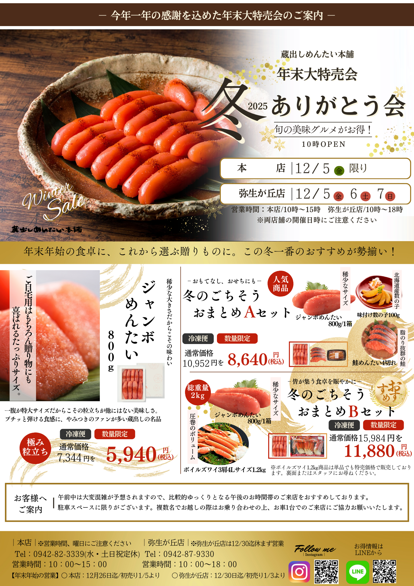今年一年の感謝を込めた年末特売会のご案内\ありがとう会/店舗イベント開催!